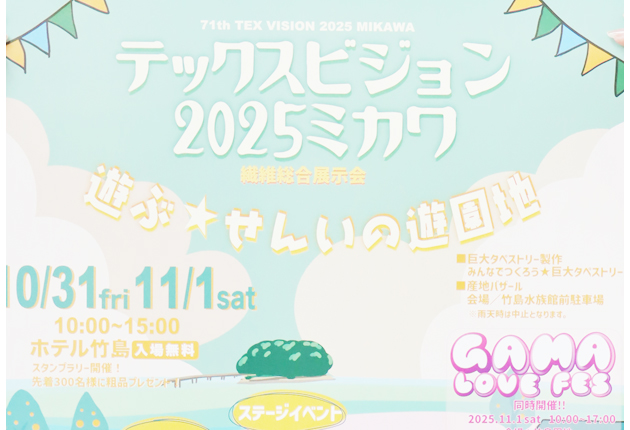 蒲郡市の蒲郡商工会議所は、31日から2日間の日程で開く繊維総合展示会「テックスビジョンミカワ」の概要を発表した。今年はファッションイベント「GAMA LOVE FES(ガマ・ラブ・フェス...