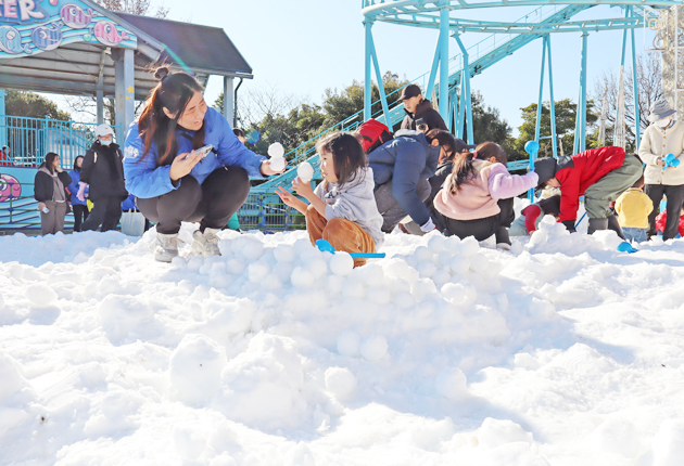 蒲郡市海陽町のテーマパーク「ラグナシア」に10日、本物の雪で遊べる「ラグーナゆきひろば」がお目見えした。家族連れらが雪だるまを作ったり、雪の上に寝転がったりして楽しんだ。 雪が少ない...