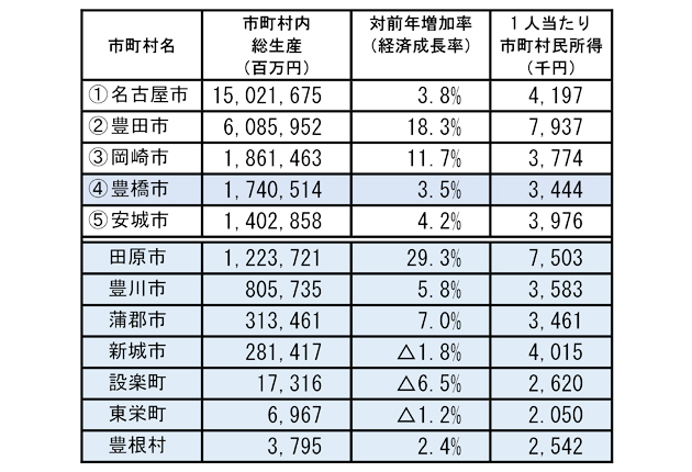 県は、自治体ごとの経済規模や経済成長率などをまとめた「2023年度あいちの市町村民経済計算」を公表した。東三河の経済成長率は9・9%のプラスだった。 企業などの生産活動で生み出され...