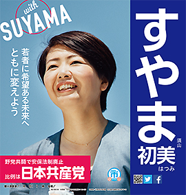 戦争法の成立で、人を殺し、殺されるという事態が身近に迫っています。泥沼の対テロ戦争に「殺す」役割で参加すれば、報復の口実を与え、さらなる紛争拡大を招くことは明らかです。子どもや働く人の命を大切にし、戦争法の廃止に向けて全力でがんばる、すやま初美さんを心から応援します。