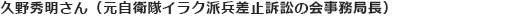 自衛隊イラク派兵差止請求訴訟で、原告・事務局員として運動に取り組んだ。名古屋高裁は、航空自衛隊のイラクでの空輸は憲法9条1項に違反する活動を含んでいると判決した。私の勲章です。