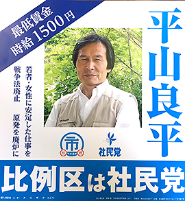 平山さんとは学生時代から交流しています。理由は、彼が社会や国家に対してぶれずに運動を続けているからです。40年の市民運動が評価されて今回が5度目の立候補という。68歳という年齢は彼の活動の年輪です。