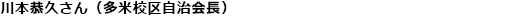 多米校区自治会長として推薦しています。自治会と一緒になって、和気あいあいの地域づくりを進めてくれる心強い存在です。