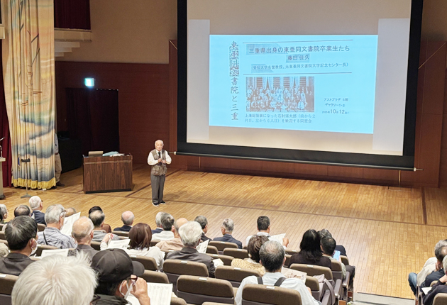 講演会は、愛大東亜同文書院大学記念センターが主催。01年に創設され終戦まで続いた書院の存在と実績を伝えるため、2006年から資料展示も含め全国で開いている。今年で20年目、23会場となった。テーマは「東亜同文書院と三重」で、元記念センター長でもある藤田名誉教授が「三重県出身の東亜同文書院の卒業生たち」と題し講演した。小林さんのほかに書院OBで活躍した三重出身者ら4人を紹介した。