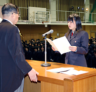 入学生誓いの言葉を述べる斎藤さん(藤ノ花女子高校で)