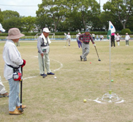 練習の成果を発揮し、会員相互の親ぼくを深めたグラウンド・ゴルフ大会(豊川市陸上競技場で)