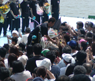 蒲郡競艇で7日、GⅠレース「オールジャパン竹島特別」が開幕した。全国からトップ級の選手52人が顔をそろえ、12日までナイターレースによる熱戦を繰り広げる。 開会式では水上ステージに全選手が並び、詰め掛けた大勢のファンの前で1人ずつを紹介。...