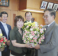 JAひまわりバラ部会(内藤嘉昭部会長、部会員数47人)の婦人部・ローズメイト(辻村羊子部会長、部会員38人)は父の日(17日)を控えた8日、豊川市役所を訪れ中野勝之市長にバラを贈った。この日来庁したのは内藤、辻村両部会長のほか、羽田野直行...