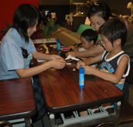 来場した子供たちにやさしく指導する生徒(豊橋市自然史博物館で)