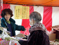しめ縄飾りを求める客と店員のやりとりが師走を感じさせる