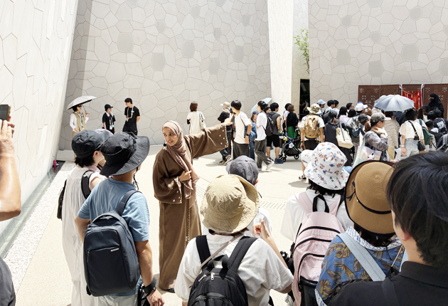 サウジ館を見学する参加者ら(提供)