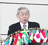スピーチする宇都野音羽町長(豊川商工会議所で)