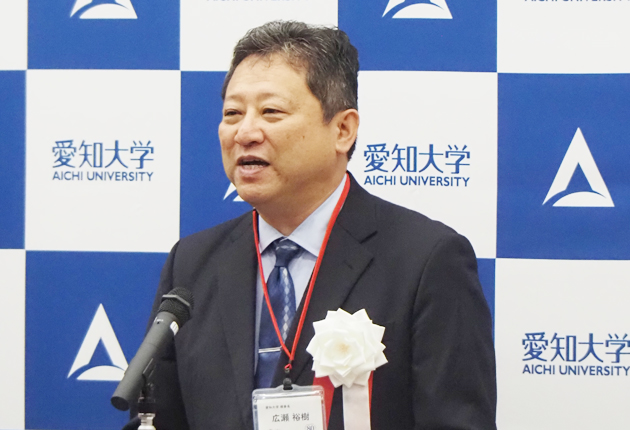 来賓の長坂尚登市長は「愛大からは地域を活性化する人材が輩出され、市役所の職員として活躍する人も多い。これからも地域に貢献を」と期待を寄せた。