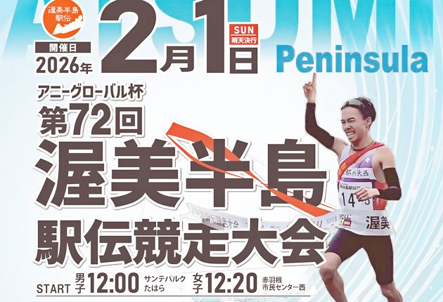来年2月1日に豊橋市と田原市で開催される「アニーグローバル杯第72回渥美半島駅伝競走大会」の実行委員会は、参加チームとボランティアを10月1日から募集する。 初春の渥美路が舞台となる渥美半島駅伝は、全国から集まった社会人や高校生のランナー...