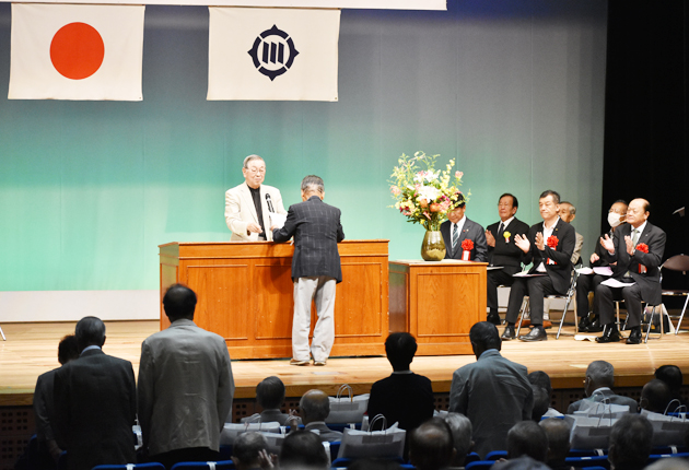 長年の功績をたたえ、市内のクラブで会長や部会長、役員を務めた33人と優良クラブ1団体に、竹本幸夫市長や櫻井会長から感謝状が贈られた。櫻井会長は「何事も楽しみがないと長続きしない。仲間と楽しみをつくって健康寿命を延ばしていってほしい」と呼びかけた。