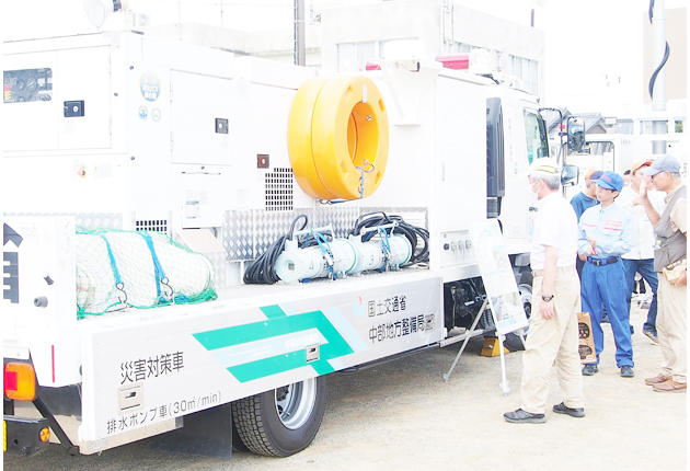 河川事務所の松原克彦副所長は、「県や市と合同での訓練に災害対策車を使うことはあるが、自治会の要請で展示するのはレアケース。たくさんの人に見てもらいたい」と話した。