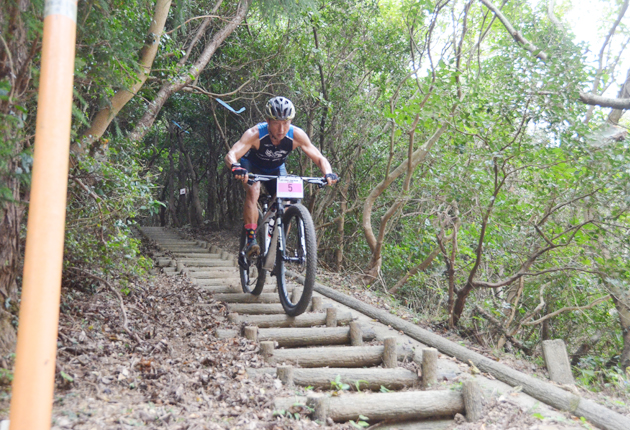 オフロードトライアスロンは、スイムのほか、山道を走行するマウンテンバイク(MTB)、山道を走るトレイルランニングの計3種目で合計タイムを競う。