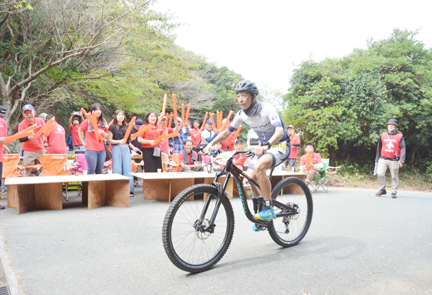 急坂をMTBで駆け降りる選手の姿を間近にした会員らは「すごい迫力」「過酷なレースですね」と話していた。