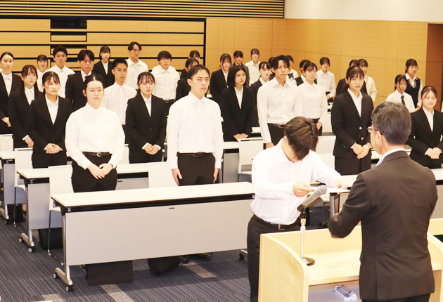 蒲郡信用金庫は1日、蒲郡市神明町の本店で内定式を行い、来年4月に入庫予定の学生らが出席した。内定者は前年の1・7倍に当たる73人で、大幅に増加した。 式では、竹田知史会長が激励し、岡本聡哉理事長が内定通知書を手渡した。 この後、近くの蒲郡...