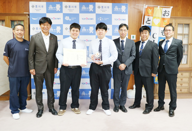 全国大会を前に9月30日、指導教員らとともに豊川市役所を訪れ、竹本幸夫市長に東海大会優勝と全国大会出場を報告した。