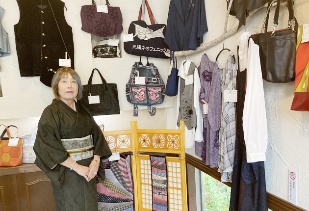 金子通世さんが主宰するリメイク教室の作品展「望郷」が、豊橋市南小池町のコーヒーショップ「プルマン」で開催され、にぎわっている。着物や帯、ジーンズなどさまざまな古い衣類をリメイクした作品が展示され、楽しめそうだ。 工夫を凝らしたリメイク作品...