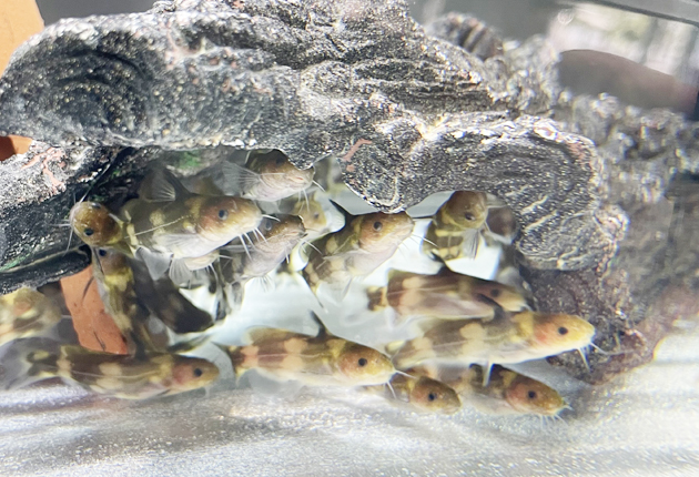 豊川市市田町の赤塚山公園が今年も、国の天然記念物で絶滅危惧種に指定されているナマズ目ギギ科「ネコギギ」の繁殖に成功した。ぎょぎょランド1階で、体長3・5センチほどに成長したネコギギたちが元気に泳ぐ水槽が来月3日まで展示されている。