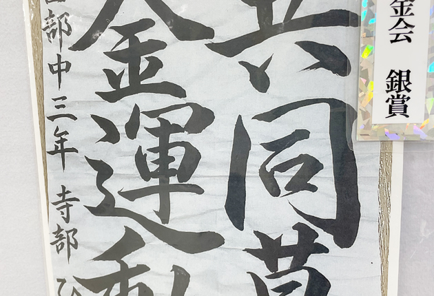 書道で市長賞に選ばれた寺部さんの作品(プリオで)