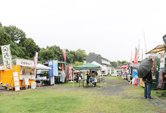 会場には、16台のキッチンカーが並び、テントコーナーには、ハンドメイドや宝さがしなど12店が出店。