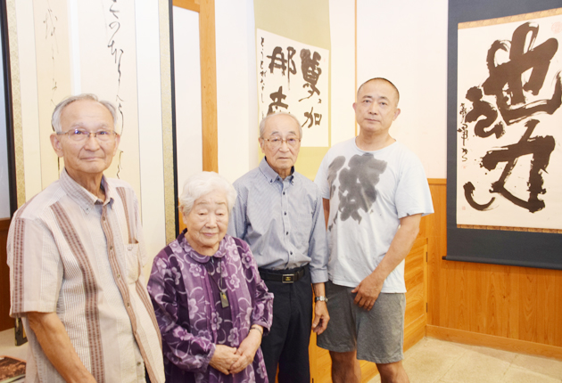 同館を管理する小笠原則彦さん(80)は、金子さんと高校の同級生。金子さんに同館での作品展を提案したところ、20年ほど親交のある浜野さんが、小笠原さんの母、波子さんに書を教えていたことがわかった。波子さんがこの6月に100歳を迎えたこともあって、二人展を開き、波子さんの作品も飾ることになった。