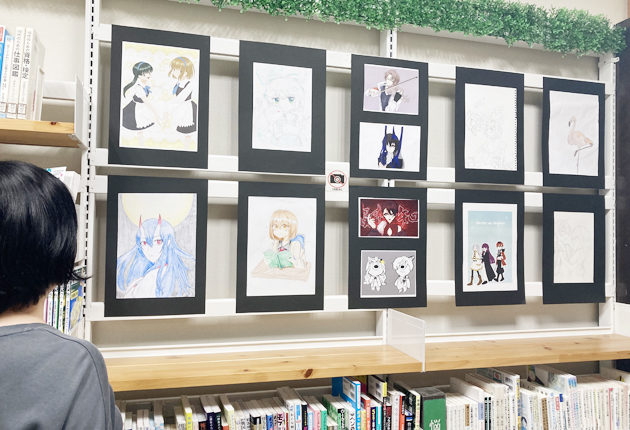 イラストアニメ部生徒の作品を展示(大清水図書館で)