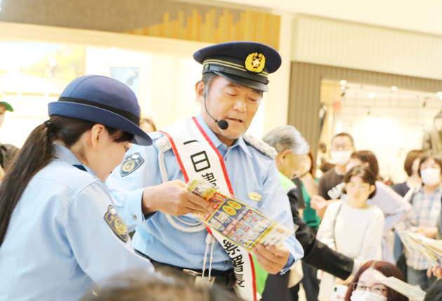 豊川市の「秋の安全なまちづくり市民運動」期間の5日、とよかわ広報大使で、豊川市出身の俳優、渡辺いっけいさんが、豊川署の「一日警察署長」を務めた。