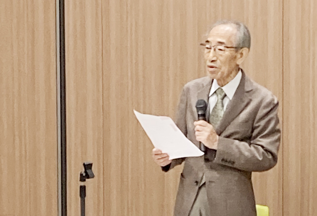 講師は、食による健康推進研究所の長谷山俊郎代表。「『人体の自然』に添う食―それが健康体をつくるー」をテーマに約1時間半、講演した。