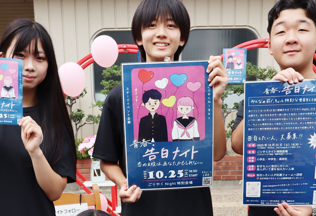 「告白ナイト」への参加を呼びかける高校生実行委員の皆さん(蒲郡市内で)