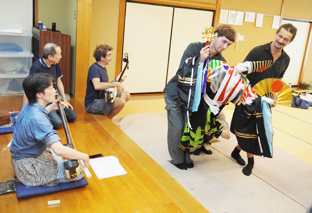 11日に豊橋市西小田原町の穂の国とよはし芸術劇場プラットで公演予定のベルギーのダンスカンパニー「ピーピング・トム」のメンバーが、11月に定期公演を予定している吉田文楽保存会を訪問し、人形浄瑠璃を鑑賞したり、人形に触れたりして交流した。
