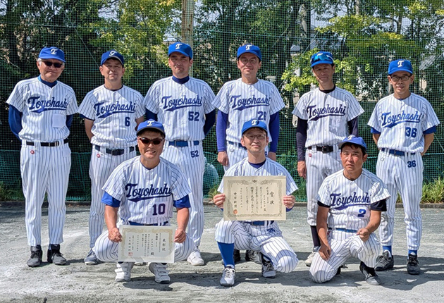 第43回中日新聞社杯争奪ソフトボール大会(男子3部)は、豊橋市向山広場で決勝が行われ、サンダースが15―7でタックスプロとの打ち合いを制して優勝を決めた。 両チームが互いに5点を取り合い同点で迎えた2回、サンダースは森泰樹の適時三塁打で勝...