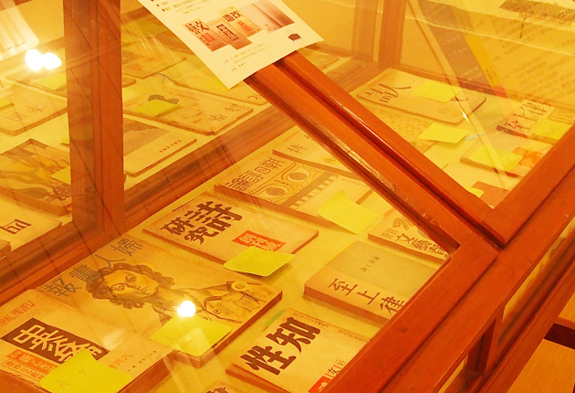 貴重な資料が並ぶ展示会場(愛知大学豊橋キャンパスで)