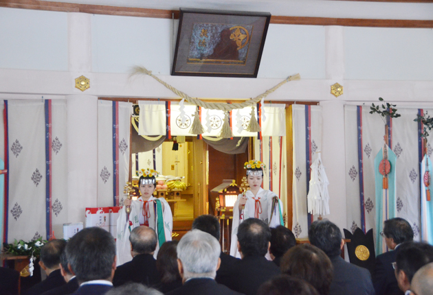 崋山神社で巫女2人が「浦安の舞」奉納/田原