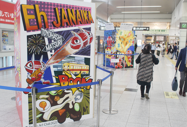 豊橋まつりに関する作品が並ぶ(豊橋駅東西自由連絡通路で)
