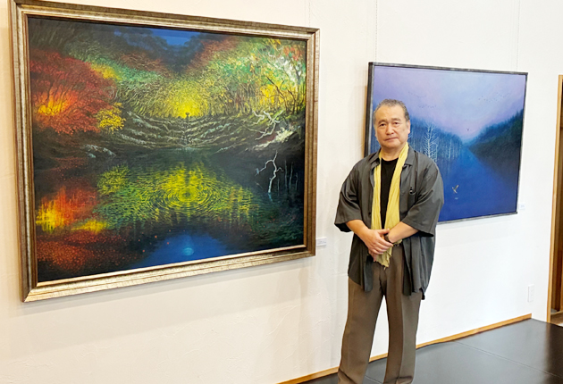 能舞台のある文化サロンとして親しまれる「汽水域」(豊橋市東小池町)の5周年を記念して、豊橋出身の画家・早川洋介さんの個展が12日に始まった。新作や未発表作など17点が並び楽しめそうだ。 早川氏は、汽水域の能舞台の「老松」の作者でもある。自...