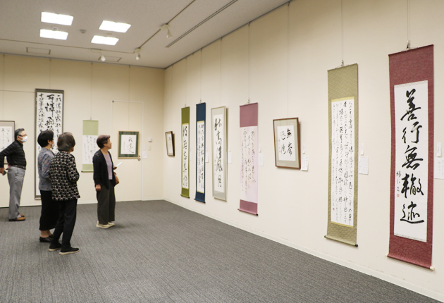 三河書芸会(権田拓朗会長)による「第16回三河壽書展」が19日まで、豊川市桜ヶ丘ミュージアムで開かれている。古希を過ぎた会員ら27人が一人1~2点、計48点を出品している。