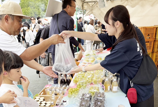 市内の児童・生徒が個性豊かに作り上げた造形物を飾る恒例の「子ども造形パラダイス」の見物に多くの親子連れが訪れたほか、物産展は同市のパートナーシティである福島市の果物など新鮮な農産物や特色ある品々を買い求める客でにぎわった。