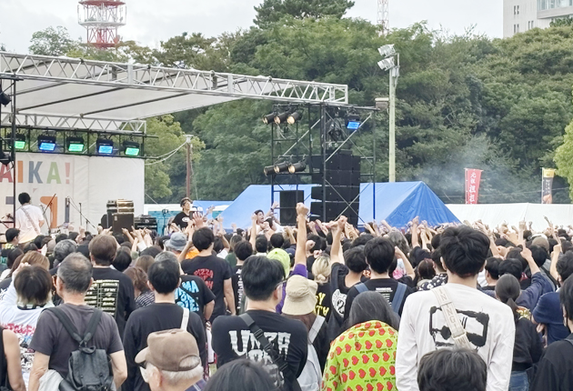 芝生の広場にステージが設けられ、出演したバンドは観客を巻き込んで熱のこもったパフォーマンスを繰り広げた。