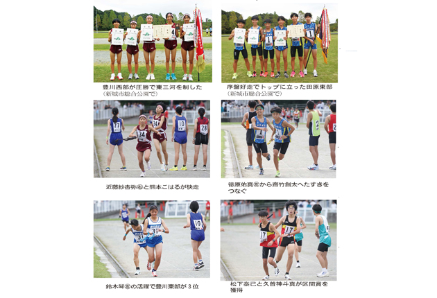 東三河中学校駅伝大会。男子は混戦も予想されたが、田原東部がレース序盤のリードを守り切って優勝した。徳原佑真が絶好のスタートを切ると、2位以下に10秒以上の差をつけてたすきをつないだ。2区、3区と粘り強い走りでトップをキープすると、4区の石...