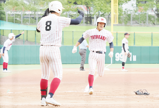 豊川は初回、上江洲由誠の三塁打と國立和之将の中犠飛で2点を先制。6回に辻瑛太の適時打で追加点を奪ったが同点とされ延長に突入。國立の右犠飛で1点差まで迫ったがわずかに届かなかった。