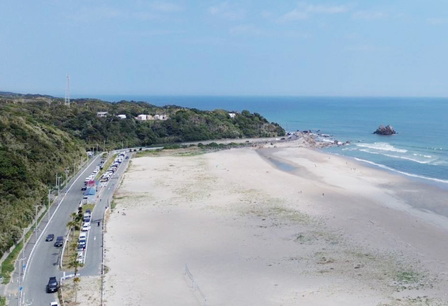 一色ノ磯から赤羽根漁港まで続く砂浜は「太平洋ロングビーチ」とも呼ばれ、全国屈指のサーフポイント。日本各地から多くのサーファーが集まる。