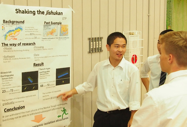 英語で発表する3年生たち(時習館高校で)