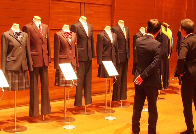 制服や体操服がずらりと並ぶ展示会(穂の国とよはし芸術劇場プラットで)