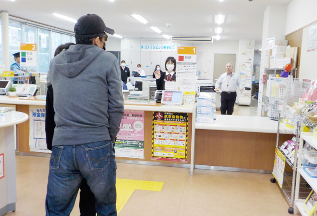 客を人質に現金を要求する犯人(設楽町の設楽郵便局で)=提供