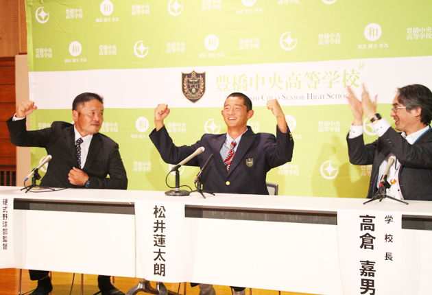 松井蓮太朗が指名を受けて拳を突き上げた(豊橋中央高校で)