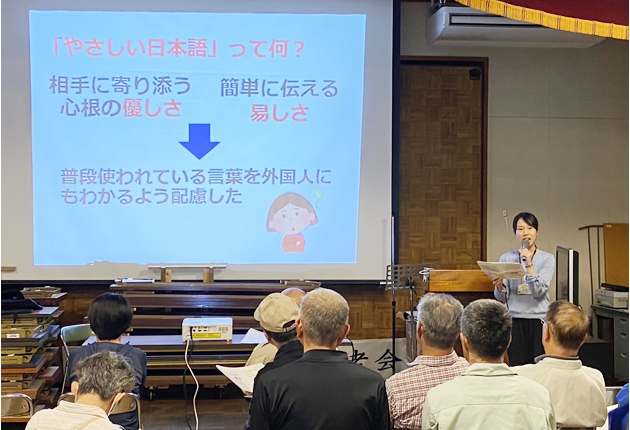 「やさしい日本語」に関する市の出前講座(篠束集会場で、市提供)